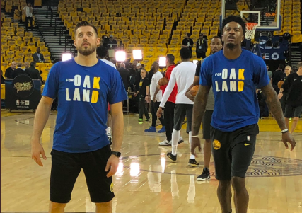 | 勇士赛前特别订制T恤和毛巾:为了奥克兰,为了KD |